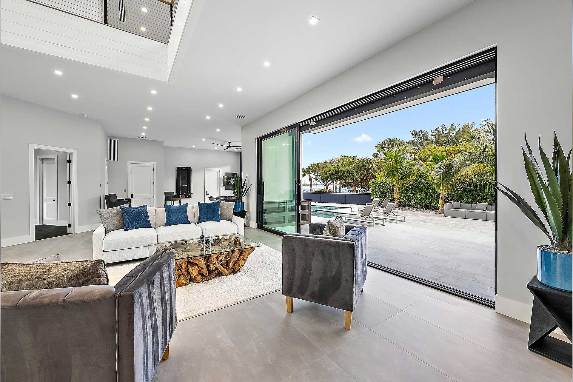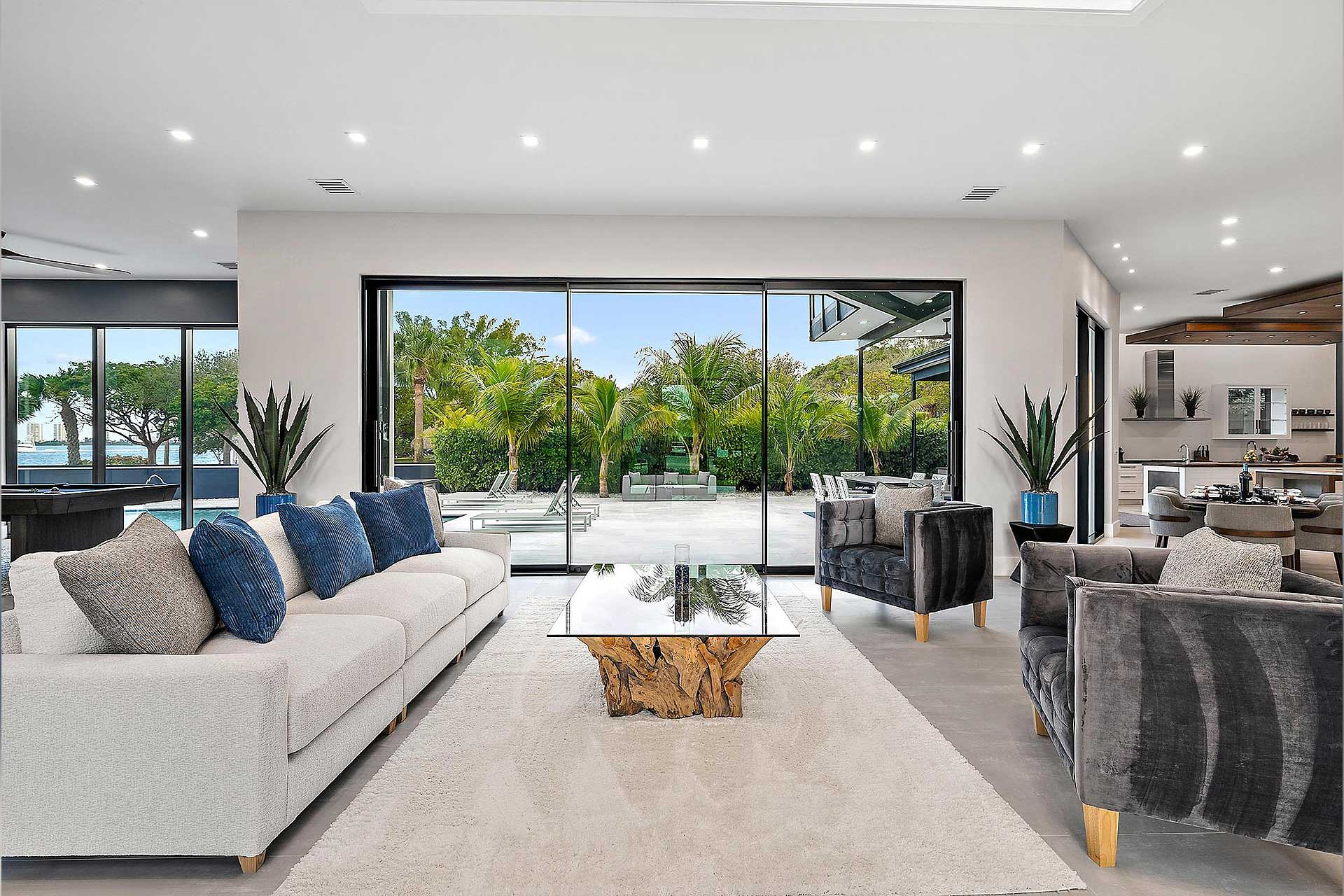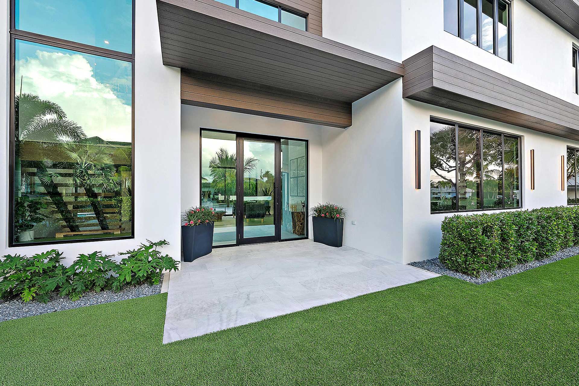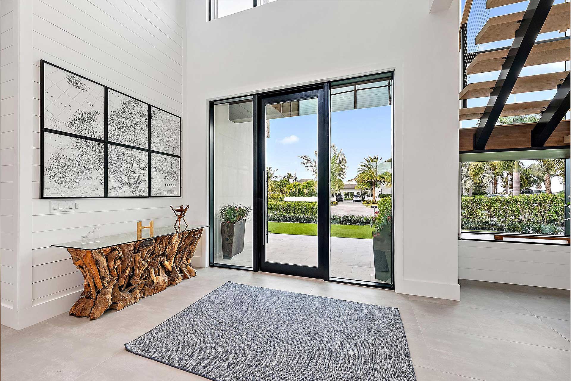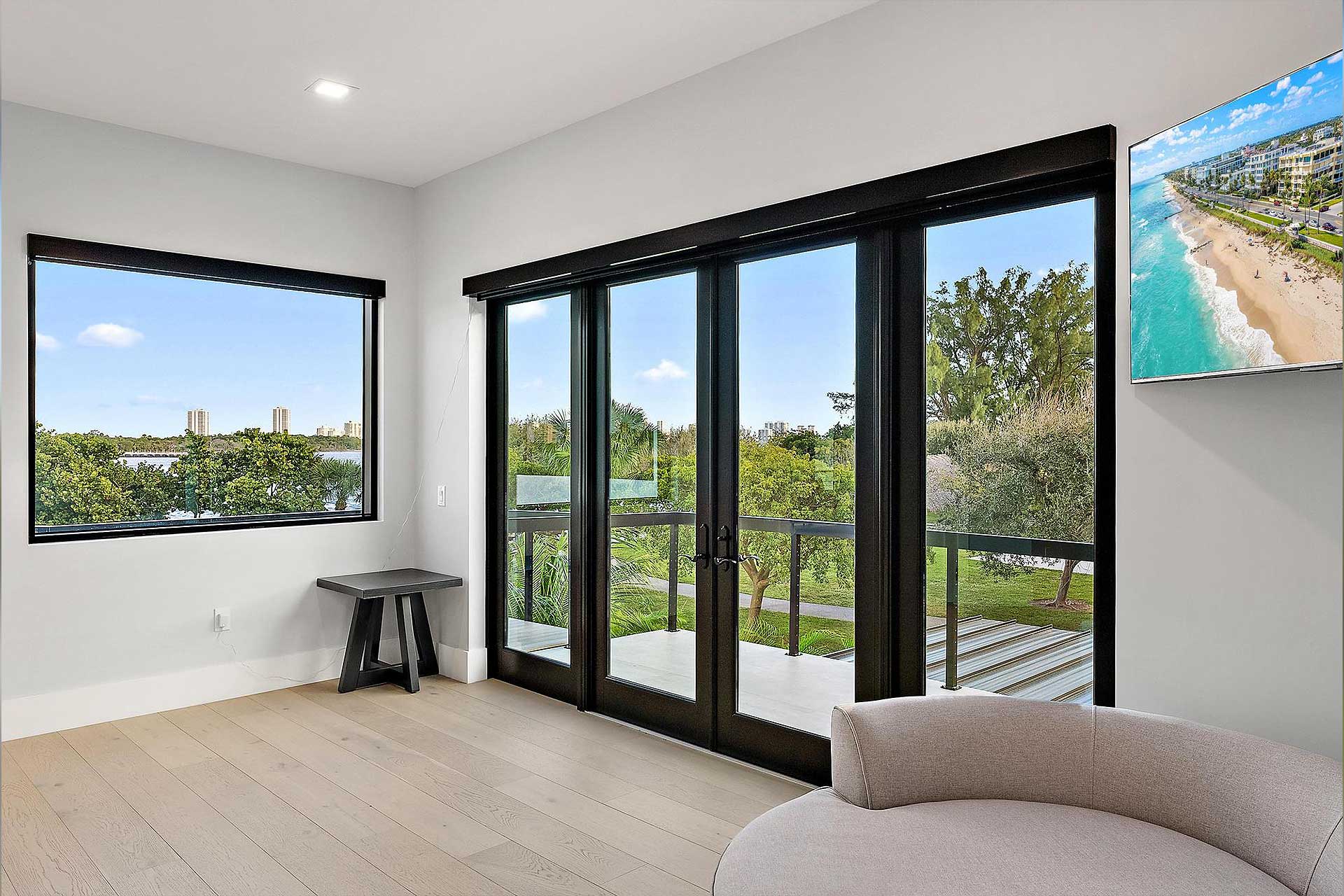 For this modern project we utilized PGT products for the operable casement windows, fixed windows, French doors and entry. To give the house the wow factor when walking in the entry to accentuate the back of the home, we utilized Euro-Walls Vista Multi Slide sliding glass doors with minimal vertical site lines.