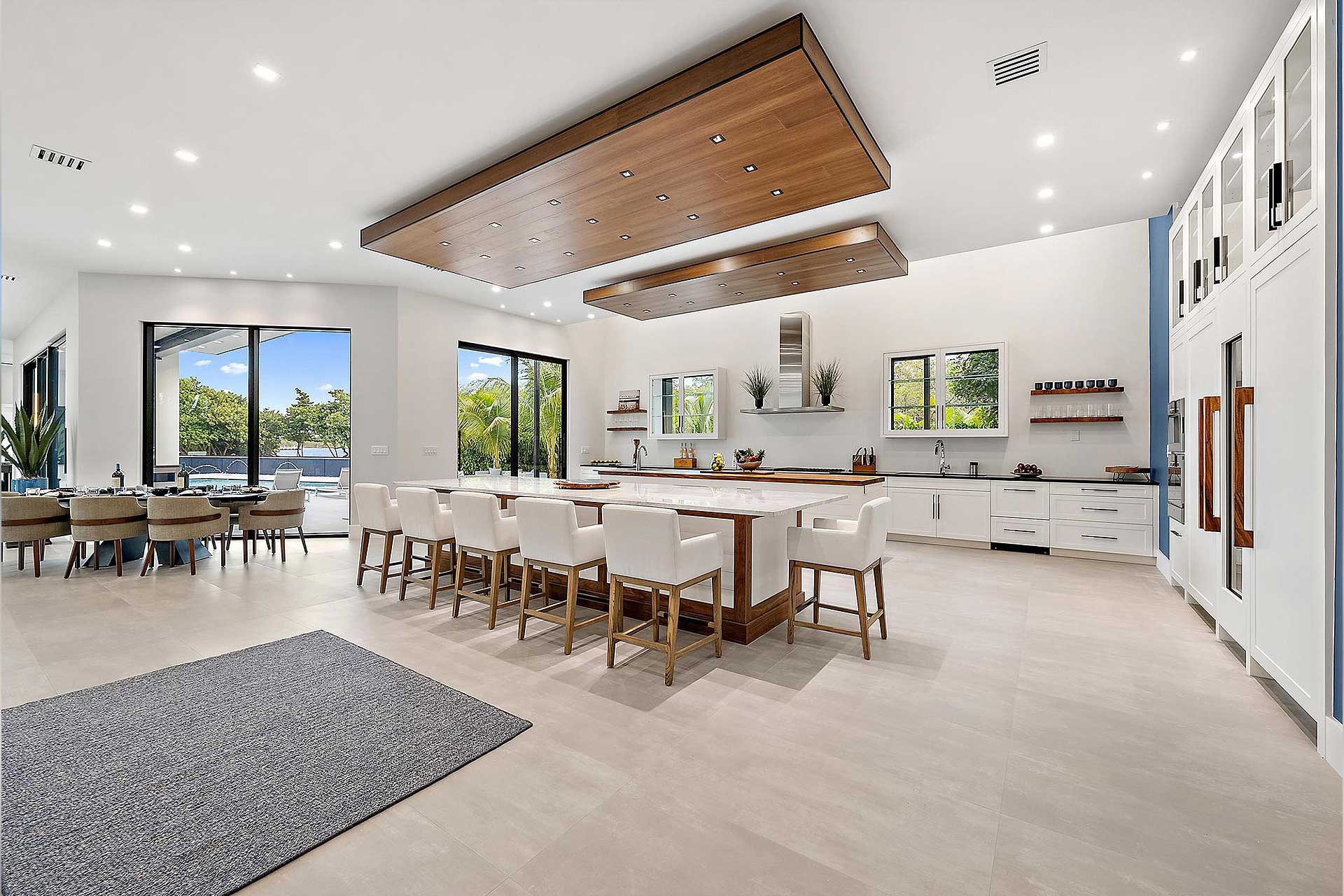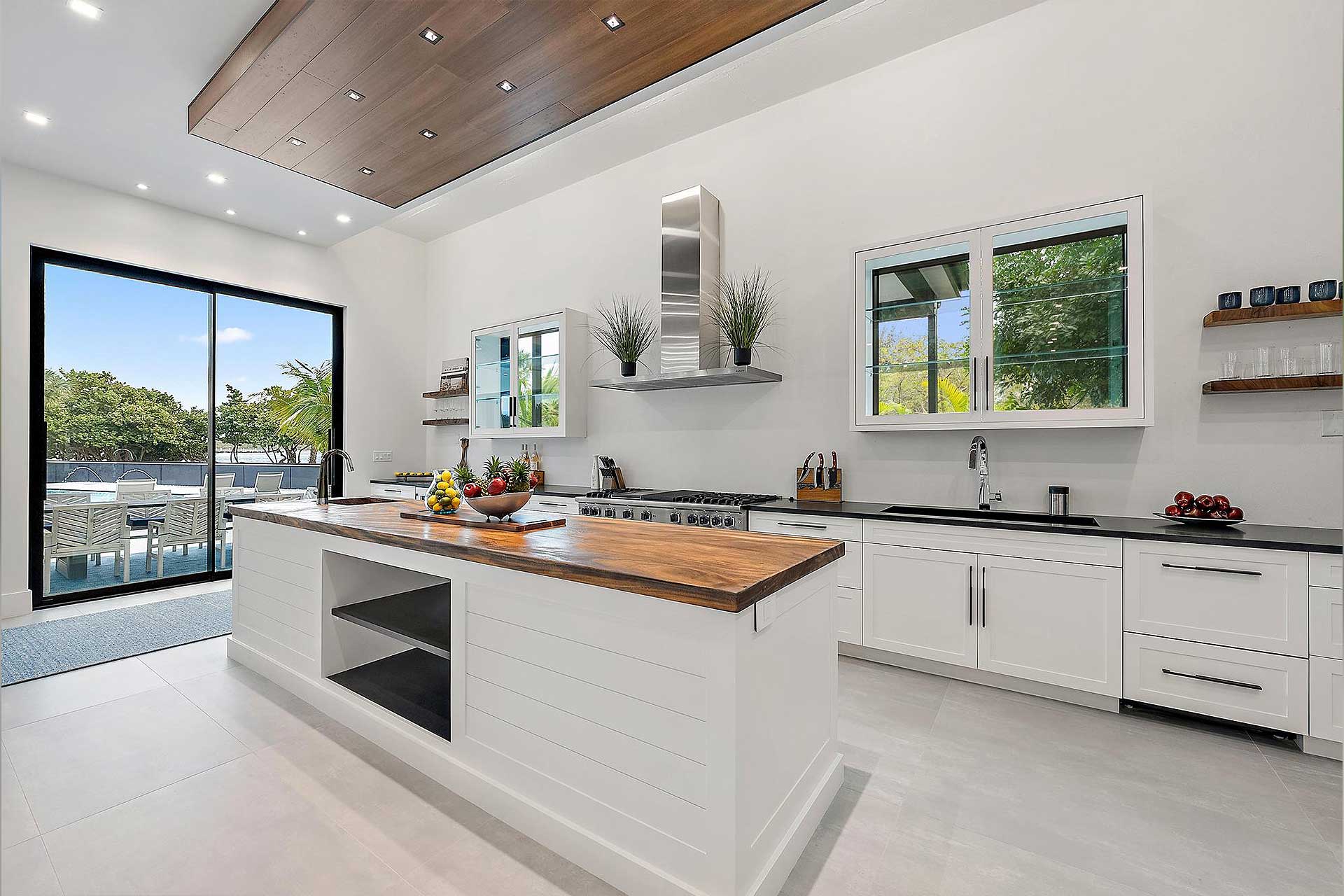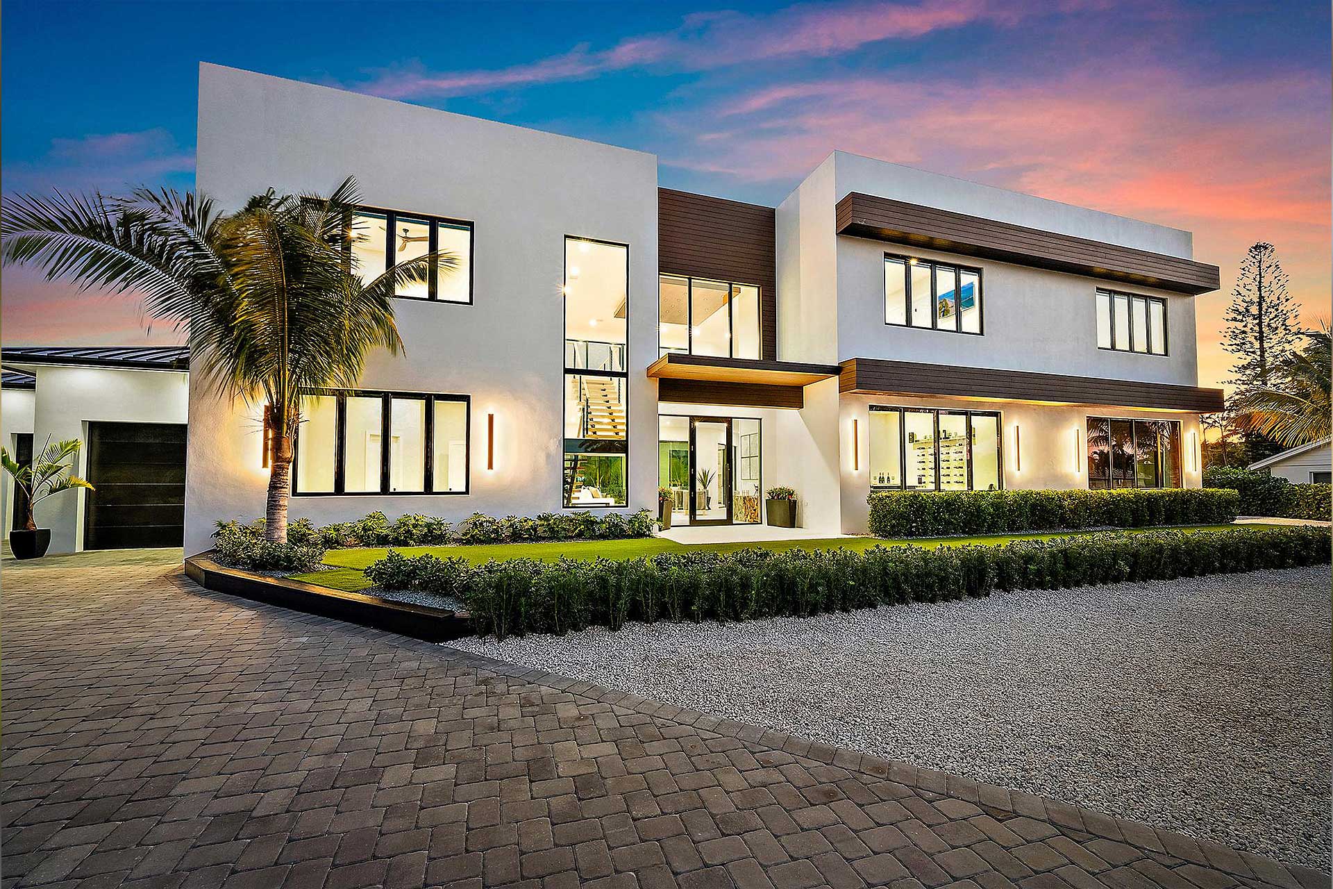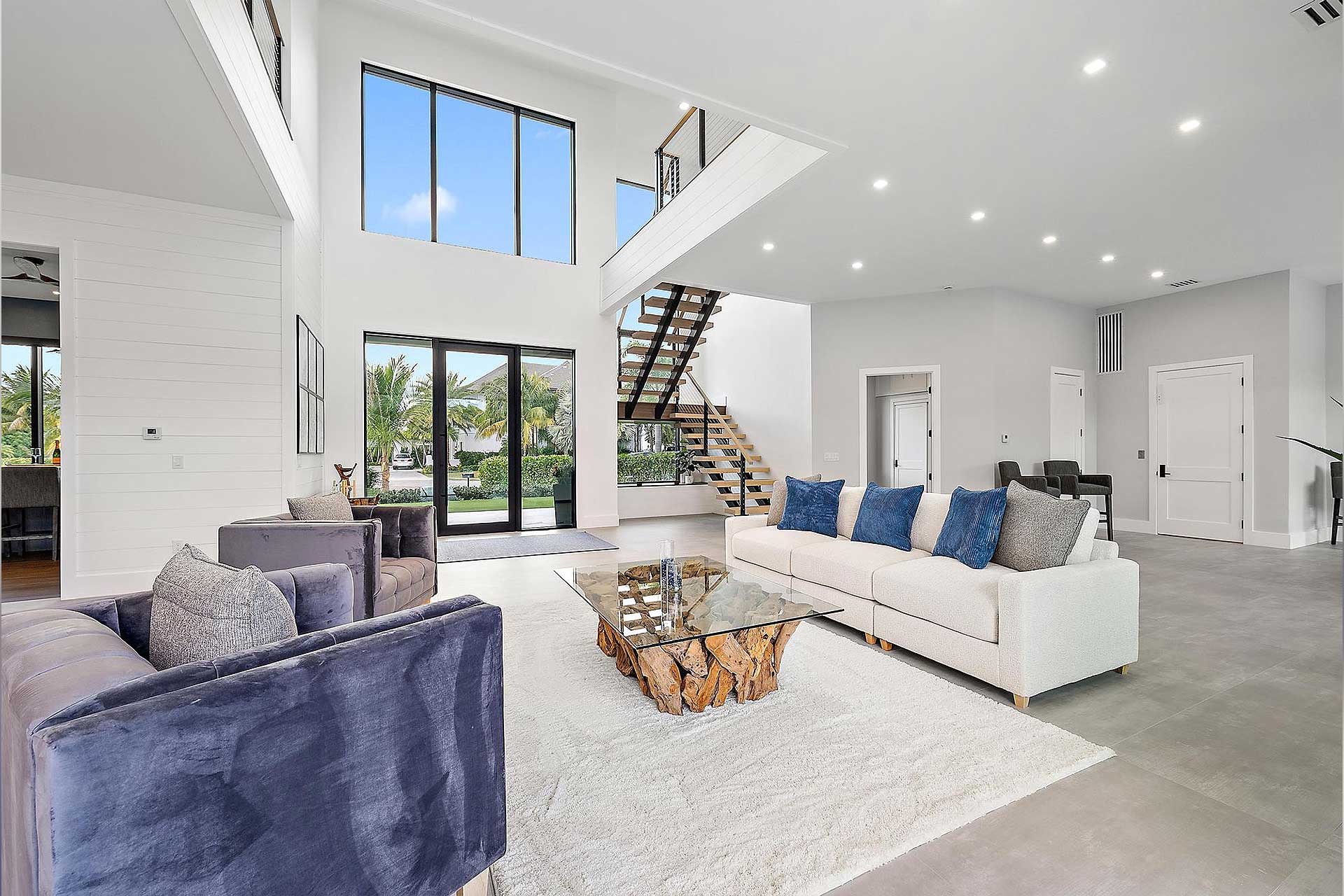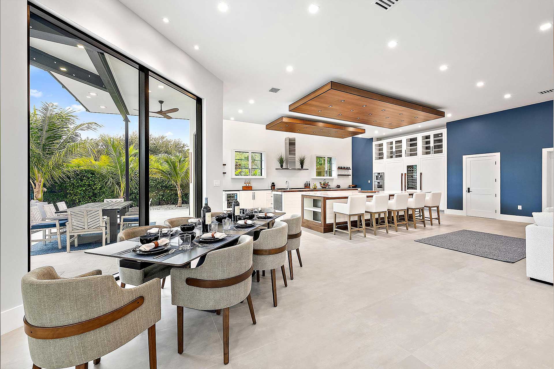 For this modern project we utilized PGT products for the operable casement windows, fixed windows, French doors and entry. To give the house the wow factor when walking in the entry to accentuate the back of the home, we utilized Euro-Walls Vista Multi Slide sliding glass doors with minimal vertical site lines.
